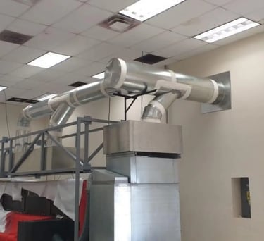 Sistema diseñado para la renovación continua del aire en áreas de trabajo mediante la extracción de aire viciado y la inyección de aire fresco. Su finalidad es reducir la acumulación de calor, humedad, olores, vapores y contaminantes en suspensión, mejorando el confort térmico y la calidad del aire interior.